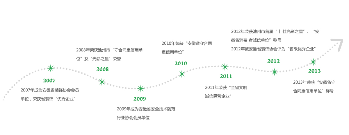 池州市大樹建設有限公司,成立于2004年,具有國家級建筑裝飾工程設計專項乙級、建筑裝修裝飾工程專業(yè)承包壹級資質、電子與智能化工程專業(yè)承包貳級資質、消防設施工程專業(yè)承包貳級、防水防腐保溫工程專業(yè)承包貳級、建筑機電安裝工程貳級、市政公用工程施工總承包貳級、建筑工程施工總承包貳級、 施工勞務不分等級、安徽省安全技術防范行業(yè)壹級資信等級。2012年通過GBIT19001-2016IS09001:2015GB/T50430-2017質量管理體系認證證書、GB/T24001-2016 IS014001:2015環(huán)境管理體系認證證書 、GB/T45001-20201S045001:2018職業(yè)健康安全管理體系等認證。歷經多年的穩(wěn)健發(fā)展,成為集辦公場所、幕墻、家具、景觀、智能家居設計和施工及科學管理于一體的大型綜合性企業(yè)。